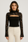 Designed to capture refined elegance with a contemporary edge, this lace cut-out long sleeve top adds sophistication to any outfit. The delicate lace overlay contrasts beautifully with the fitted bodice, creating a flattering and polished look. With a graceful cut-out neckline and flared lace sleeves, this blouse offers a balance of modern charm and timeless appeal. Perfect for evenings out, dinner events, or special occasions, it brings effortless allure to your wardrobe while maintaining a chic, confident style.