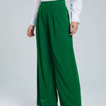 Elevate your everyday look with these elegant pleated wide leg trousers. Designed for timeless sophistication and modern comfort, these trousers feature a flattering high-rise fit with gentle pleats that create a smooth, graceful drape. Perfect for both office wear and casual outings, their flowing silhouette enhances your figure while offering all-day ease of movement. Pair them effortlessly with blouses, shirts, or knits for a polished look that transitions seamlessly from day to evening.