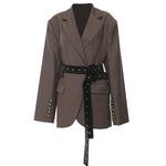 This tailored belted blazer jacket brings a refined edge to contemporary fashion. Featuring a structured silhouette with a notched lapel collar and a detachable belt, it effortlessly combines classic tailoring with modern detailing. Designed to enhance the waistline, the adjustable belt adds definition and versatility, allowing for both formal and chic casual looks. Perfect for pairing with trousers, skirts, or dresses, this blazer offers a polished yet fashion-forward statement suitable for any season.